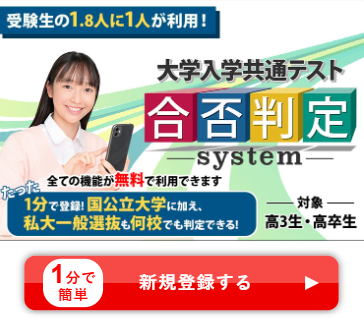 合否判定システムの判定は、全国の高等学校で採用されている「東進 共通テスト分析」のデータとインターネット上の「合否判定システム」利用者の得点データを合算して分析しています。母集団における重複登録や不正登録は除外しています。