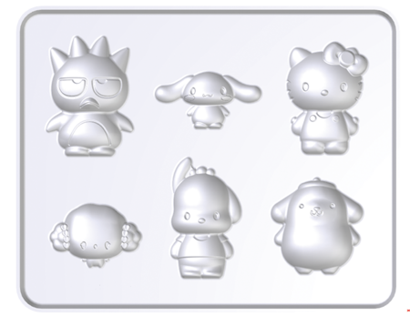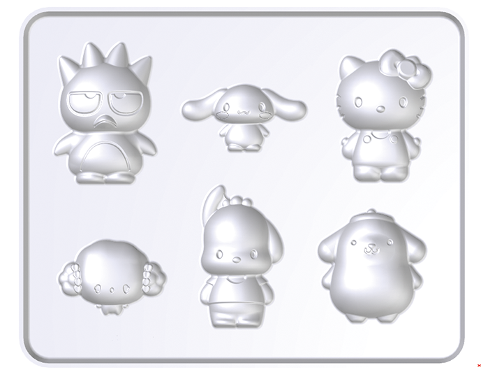景品:ハローキティ、ポムポムプリン、シナモロール、ポチャッコ、バッドばつ丸、こぎみゅんの6キャラクターが入ったチョコ型1個