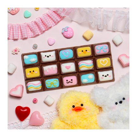 昨年話題を呼んだ「板チョコマンション」を、さらにかわいくアップデートしました。板チョコの窓(くぼみ)にマシュマロを流し込み、ぷっくり愛らしい見た目に仕上げました。