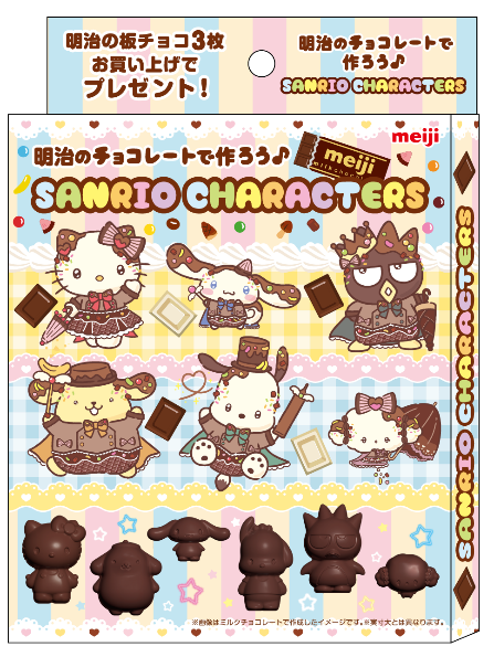 明治の板チョコを3枚お買い上げいただいた方に、湯煎したチョコレートを流し込むだけでサンリオキャラクターズのかわいいチョコが作れるオリジナルチョコ型をプレゼントするキャンペーンを実施します。推し活やケーキなどのトッピングにもぴったりです。自分の好きなようにデコレーションしてお楽しみください。