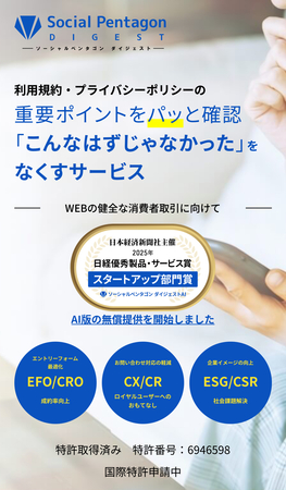 日本初!利用規約要約AI「ソーシャルペンタゴン ダイジェストAI」2025年日経優秀製品・サービス賞を受賞