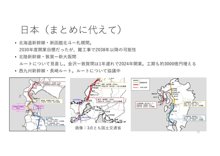 ・リニア中央新幹線は開業延期と費用倍増、北海道新幹線の札幌延伸も遅延の可能性、北陸新幹線はルート未定区間が残る