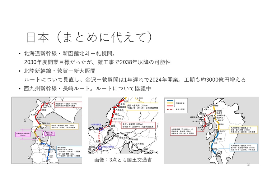 ・リニア中央新幹線は開業延期と費用倍増、北海道新幹線の札幌延伸も遅延の可能性、北陸新幹線はルート未定区間が残る
