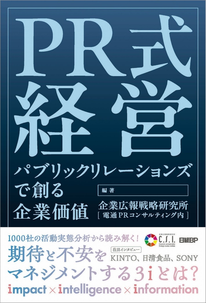 本書では、日本の上場企業約1000社から得たPR/広報の活動実態調査・分析結果から、Keyステークホルダーの期待と不安をマネジメントすることで将来価値を効率的に高める新しいパブリックリレーションズ(PR)について、インテリジェンス(広聴)・インフォメーション(広報)・インパクト(広益)の3つのiの視点から考察しています 。