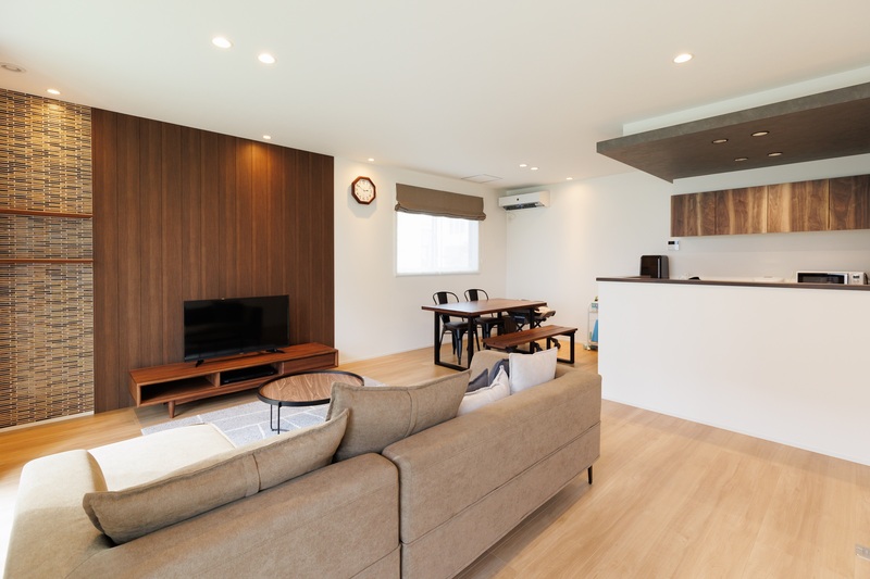 SIならではのプランニングを活かし、在来木造では難しい幅約4.5mという大空間リビングを実現