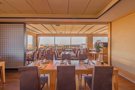 当レストランは、成田の緑豊かな景色と、離着陸する飛行機を間近に望む開放的なロケーションが魅力です。料理長が目の前で握るにぎり寿司や、揚げたての天ぷらをはじめ、旬の魚介を使ったお造り、体を温める鍋料理など、和の技が光る多彩なメニューをビュッフェスタイルでご提供いたします。