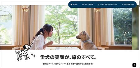 「日本最大級の施設網で、ドッグ&愛犬家ファーストな最高の旅を見つけ予約できる専門プラットフォーム」。観光情報から旅のお役立ち情報、おすすめのホテル情報まで網羅した愛犬との思い出作りに役立つアイコニア・ホスピタリティの愛犬との旅に関する情報サイトです。