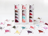 京都の職人が着物と同じ絹の生地を使い、一点一点、すべて手作業で、丁寧に染め上げられた眼鏡等のクリーニングクロス。「京都の彩り」も目を引く。