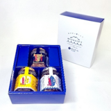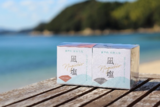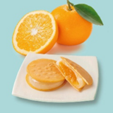 瀬戸内産の八朔の果肉と皮を丸ごと使用したジャムを、八朔ピューレを練りこんだ求肥で包み、しっとりとした煎餅で挟んだ三層構造。柑橘のさわやかな酸味と、ほのかな苦み、それと香ばしい煎餅の風味。広島大学との共同研究で生まれた商品。パッケージデザインも風呂敷と八朔をモチーフに、瀬戸内の海のブルーと、八朔のオレンジ色を基調とした色合い。