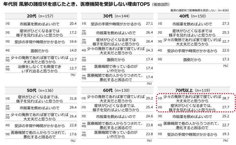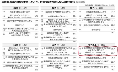 医療機関に行かない理由、「寝ていれば大丈夫」「市販薬を飲めばよい」「様子を見ればよい」