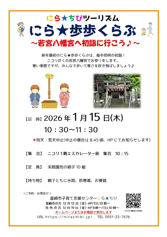 親子で韮崎市を歩くイベント!「にら★歩歩くらぶ」1月は若宮八幡宮