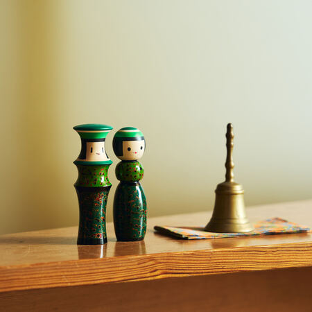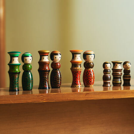 老舗百貨店「松屋」の地域共創プロジェクトの一環として、松屋銀座と青森県黒石市との協働により、青森の伝統工芸品「津軽こけし」を未来に繋ぐことを目指し誕生。日本を代表するグラフィックデザイナー佐藤卓氏が“人との繋がり”をテーマにデザインし、壺のシルエットが向き合った顔にも見える「ルビンの壺」から着想を得て「ルビンのこけし」と名付けられました。津軽こけしの名工が一つずつ丹精を込めて削り出した、木の温もりと繊細な技術が感じられる逸品です。※こけし工人…伝統こけしを作製する職人のこと