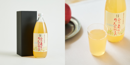 さらに、黒石市上十川(かみとがわ)地区の名産であるりんごを使用した、100%の無添加ストレートジュースもラインアップ。豊かな甘味の「ふじ」、爽やかな酸味の「ジョナゴールド」、芳醇な香りの「王林」をブレンドした味わいを30本限定でお届けします。