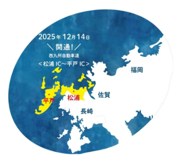 令和7年12月14日、西九州自動車道松浦佐々道路の松浦IC~平戸IC間が開通しました。