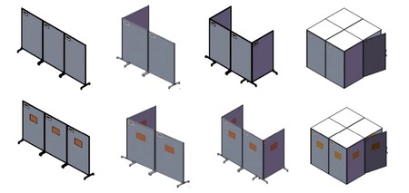 1枚ごとのパネルを連結するモジュール方式を採用。現場のスペースや動線に合わせて、「L字型」「コ字型」「直線」など、必要な枚数を組み合わせて設置形状を調整可能です。また、専用の扉ユニットを連結するだけで、任意の場所にドアを設置可能。大掛かりな施工工事は不要で、後からパネルを追加して作業エリアを拡張することも容易です。