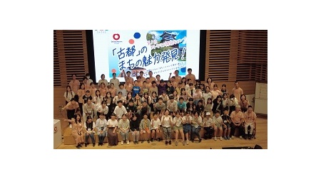 | 中学・高校生を対象として、「『古都』のまちの魅力発見!」をテーマに、まちを歩いて自治体や地域住民の話を聞き、「大人になっても住み続けたいまち」について考える1泊2日のプログラムです。2024年8月8日、9日には、54名の学生が参加し、当社社員や奈良県内の大学生が参加者をサポートし、まちの魅力について大和郡山市にプレゼンテーションを行いました。 |