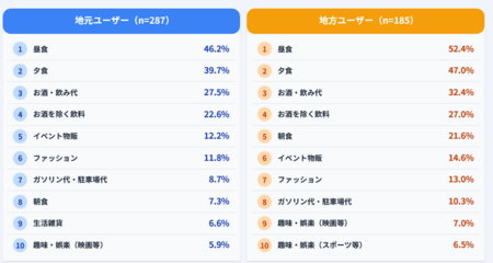 <図5. 地元の来訪者、地方からの来訪者それぞれの支出項目詳細ランキング>