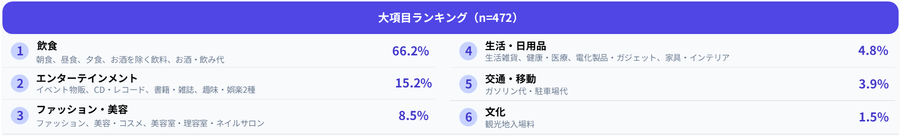 <図3. 来訪者全体の支出項目ランキング分析(カテゴリ別)>