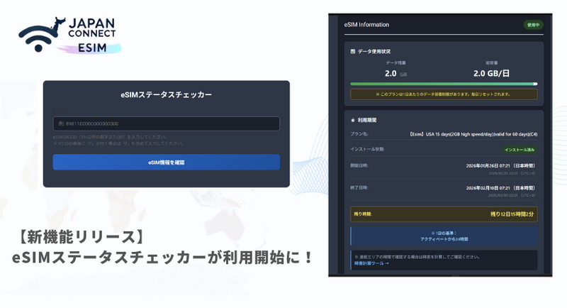 JapanConnect eSIM、「eSIMステータスチェッカー」を公開 〜海外旅行中の通信トラブル不安を解消〜