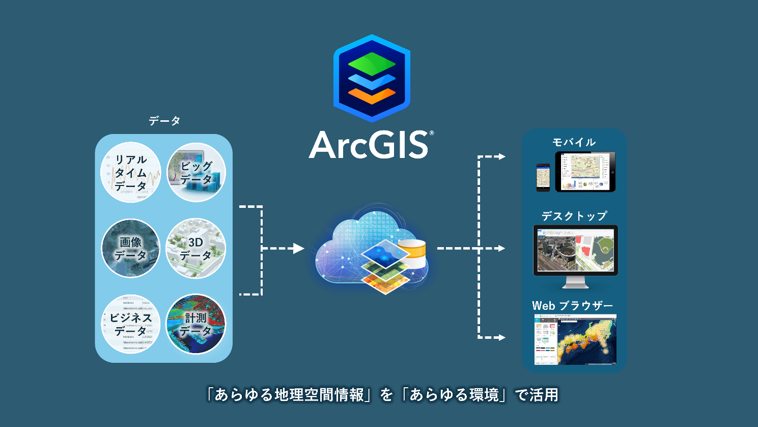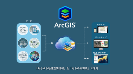 誰もが地図や情報を検索、作成、共有、利用できるようにするための地理空間プラットフォーム。すぐに利用可能な豊富な地図データや、簡単な設定のみで業務に活用できる各種アプリが提供されており、いつでも、どこでも、あらゆる端末からアプリを利用して、共有された地図や情報へのアクセスが可能です。