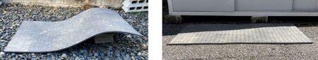 ■反りやたわみが生じても約1日で復元 柔軟性に優れ、凹凸がある接地面にも良好に追従。反りやたわみが生じても平地に置けば約1日で元の形状に復元します(自社試験)。 |