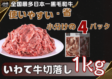 「いわて純情セレクト」の大人気商品。岩手県産和牛1㎏を、250gパックに小分けしました。冷凍庫のストックにもおすすめ。
