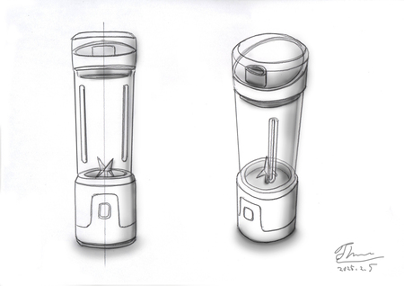パワフルで持ち運びやすく、アクティブで質実剛健なイメージをデザインコンセプトに掲げて、いくつものデザイン案を考案しました。コードレスタンブラーミキサーはコンセントの無いキッチンでも重宝されるため、キッチンでの使用シーンも想定し、質実剛健なジャーマンデザインの要素も取り入れました。
