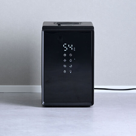 インテリアになじむキューブ型のデザインと、湿度センサー搭載による効率的な加湿を両立