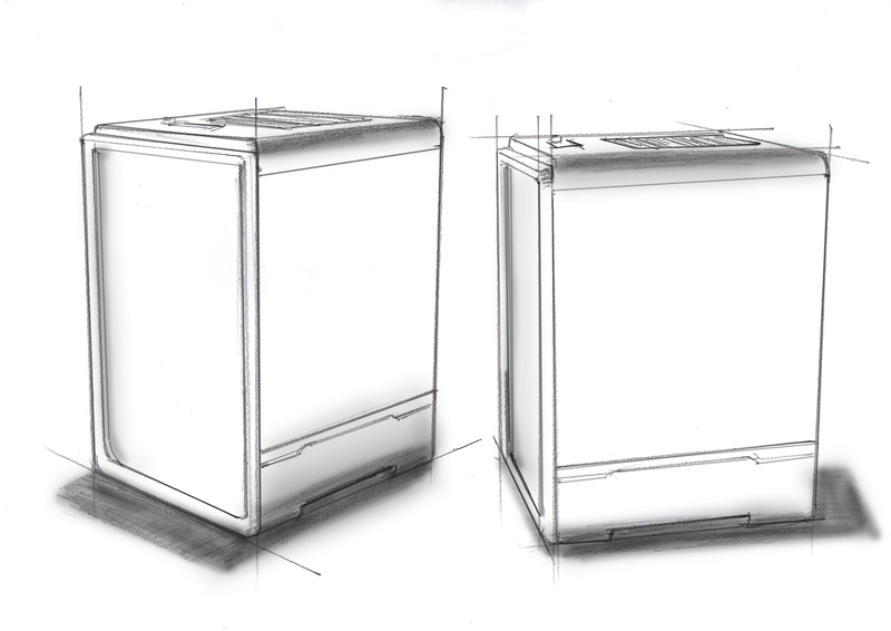 様々なアイデアのスケッチや3Dモデルを検討し、最終的にキッチンやリビング・ダイニング、デスクの上での使用用途に相応しい、シンプルかつソリッド感と一体感のあるフォルムにたどり着きました。