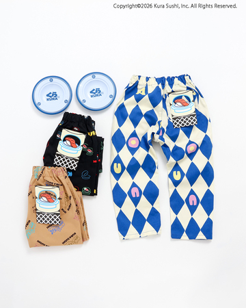 防汚加工 くら寿司コラボ 総柄SUSHIパンツ