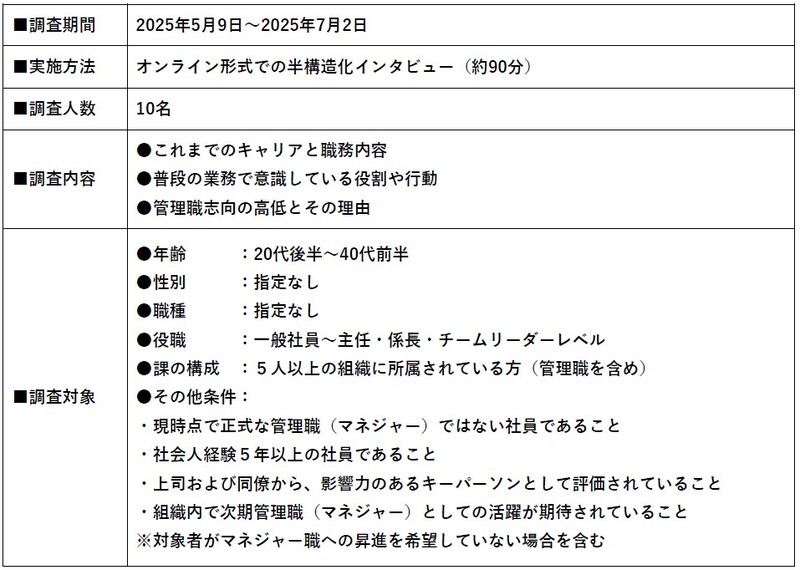 当調査では、このような存在を「職場のキーパーソン」と定義し、その役割や意識・行動の実態を明らかにすることを目的として、インタビュー調査を実施しました。