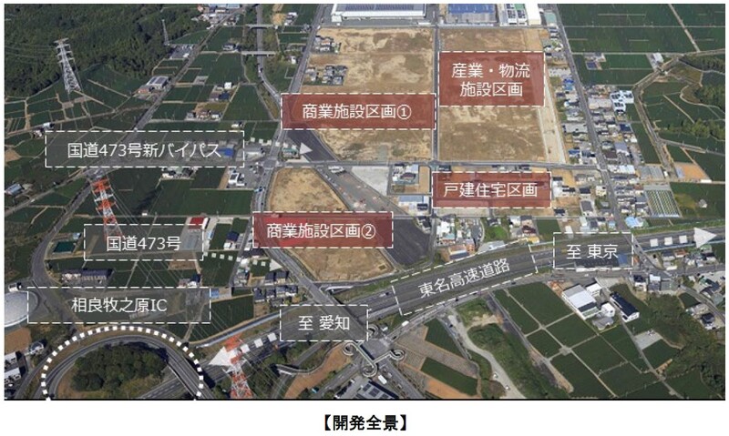 なお、本プロジェクトは、大和ハウス工業が2025年12月までに取得した「牧之原市IC北側土地区画整理事業」の保留地等(約17.14万㎡)を、商業施設区画(2区画)、産業・物流施設区画、戸建住宅区画として全4区画開発する予定で、2030年冬頃に全体の完成を予定しています。