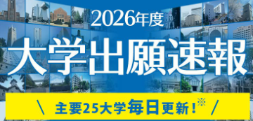 各大学の志願者数や出願倍率など、出願状況をチェックできる、東進の「大学出願速報2026サイト」も便利です( https://www.toshin.com/examinee/ )。主要25大学については、毎日更新しています。