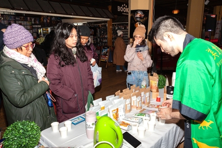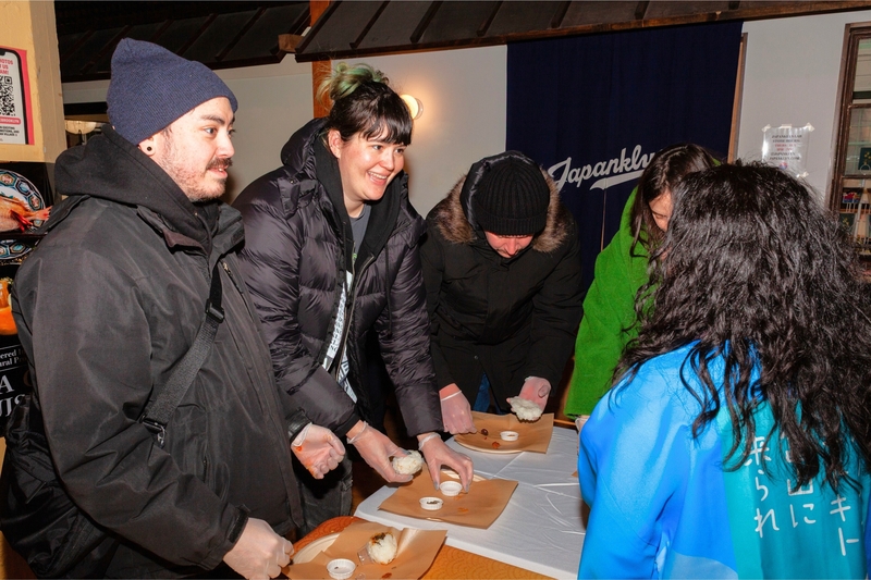 また、1月24日(土)・25日(日)(現地時間)には、2階のイベントスペース「The LOFT」で、ワークショップや抽選会イベントを開催しました。 期間中はあいにく3年ぶりのマイナス12℃を下回る寒波による大雪に見舞われたため、イベントスケジュールの一部変更を余儀なくされたものの、参加者に一番人気だったおにぎり作り体験では、約300人の参加者が、会場に用意された3県のブランド米(ひゃくまん穀〈石川県〉、富富富〈富山県〉、いちほまれ〈福井県〉)と、石川の能登の塩やゆず味噌、富山のブリの焼きほぐし、福井で栽培されるうめの品種「紅映梅(べにさしうめ)」を使用したねり梅など、9種の具材の中から好きなものを選び、自分好みのおにぎりを作りました。