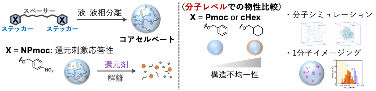 本成果は、低分子化合物を用いたコアセルベートの合理的分子設計を提案し、生体機能材料や高度なコアセルベート型人工細胞の構築に向けた基盤を提供するものです。