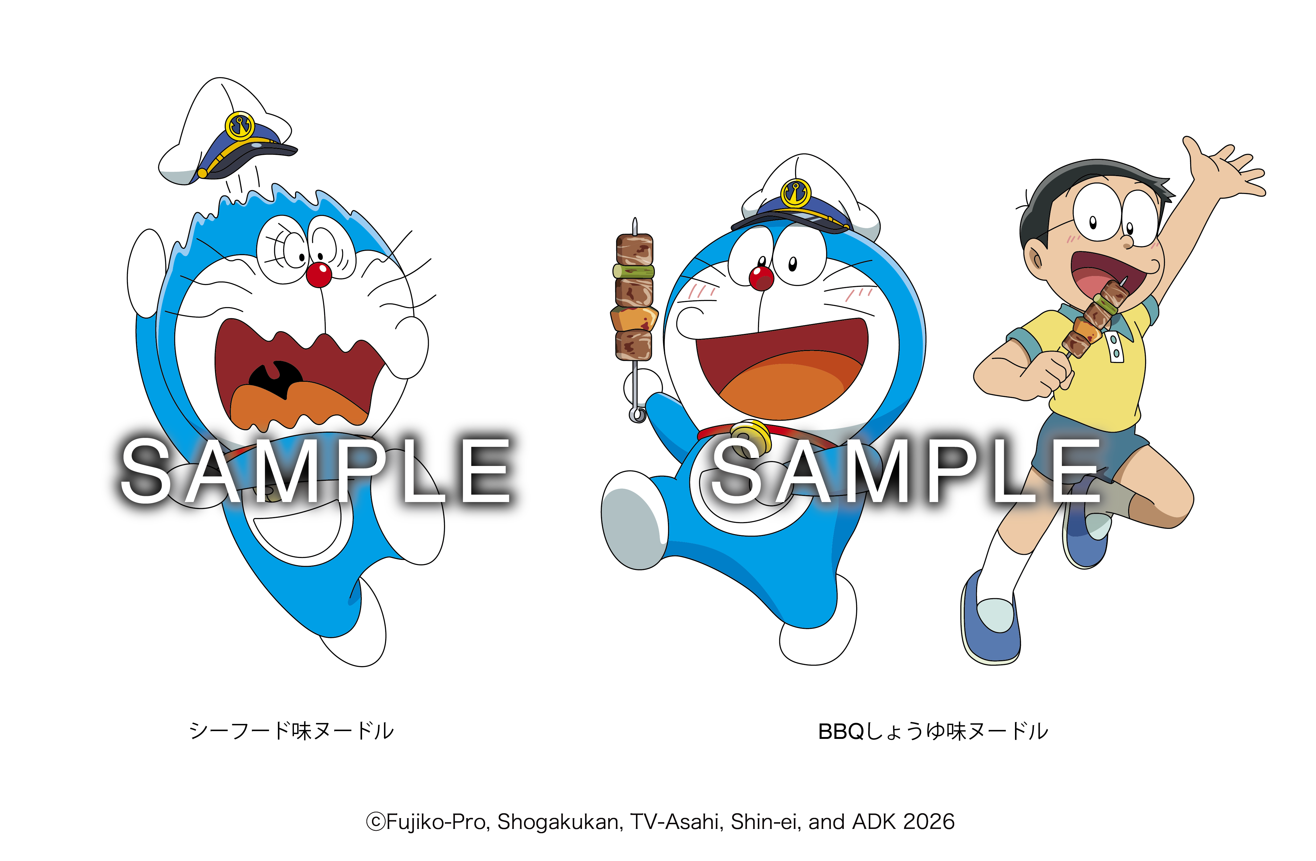 明星食品株式会社 (社長:豊留昭浩) は、『映画ドラえもん 新・のび太の海底鬼岩城』の公開を記念して、カップめん「明星 映画ドラえもん 新・のび太の海底鬼岩城 シーフード味ヌードル」と「(同) BBQしょうゆ味ヌードル」を、2026年2月23日(月)に全国で新発売します。