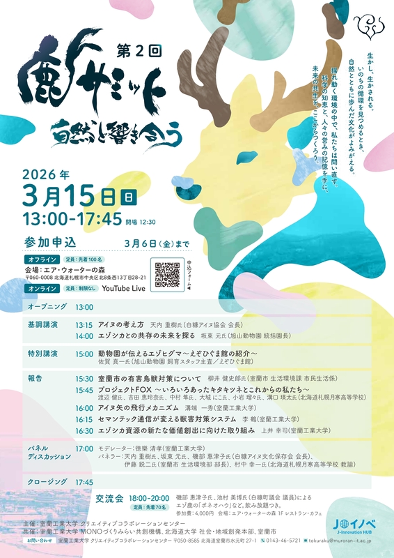 エゾシカやヒグマによる被害や安全対策が社会課題となる中、旭山動物園 統括園長・坂東元氏、白糠アイヌ協会 会長・天内重樹氏らを迎え、文化・科学・地域の知恵を結集して「人と野生動物が響き合い、ともに生きる未来のかたち」を考える公開イベント『第2回鹿サミット-自然と響き合う-』を下記のとおり開催します。