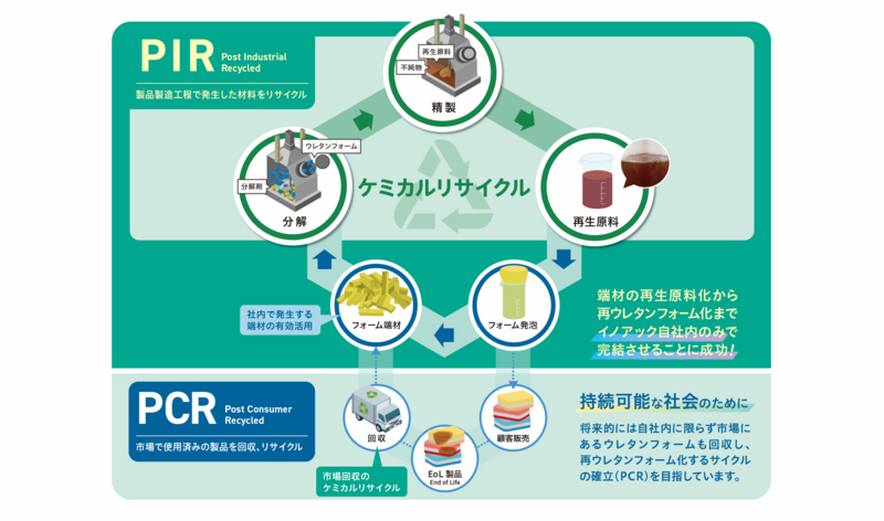 ウレタンフォームの再生原料化から発泡までイノアックがケミカルリサイクルの一貫体制を確立
