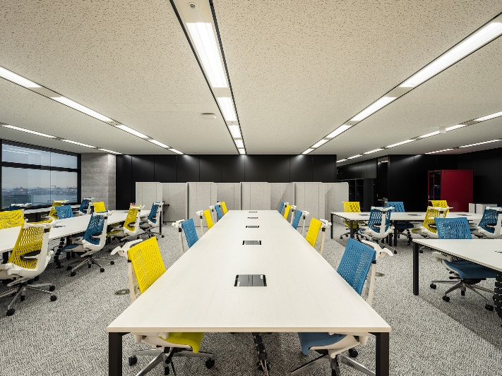 本拠点は、社員がレイアウトや什器の選定に主体的に関わることで、業務動線を最適化した機能的でデザイン性の高い空間を整備しています。加えて、オフィスラウンジや明るい執務スペースを配置することで、自然なコミュニケーションと創造性を促すワークプレイスを実現しました。さらに、東京湾やレインボーブリッジを望む開放的な立地に加え、周辺施設の利便性も高く、働きやすい環境を備えています。