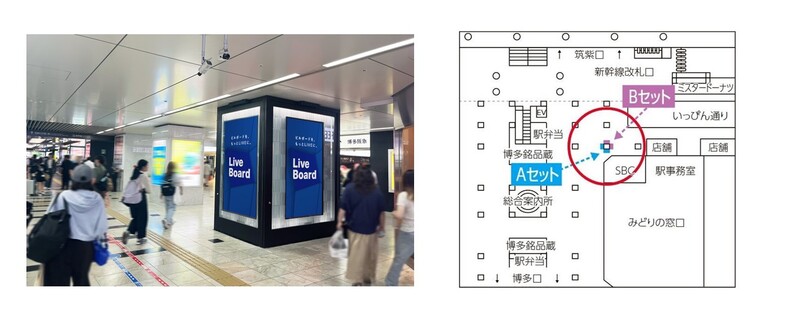 JR九州エージェンシー株式会社(本社:福岡県福岡市 代表取締役社長 盛澤 篤司 以下、JR九州エージェンシー)と株式会社 LIVE BOARD(本社:東京都渋谷区 代表取締役社長 田中 淳泰 以下、LIVE BOARD)は、JR九州エージェンシーが運用・管理する「デジタルツイン(中央改札口)」、「いっぴん通り前デジタル4面セット」を、2026年2月20日(金)よりLIVE BOARDマーケットプレイス※1へ接続します。