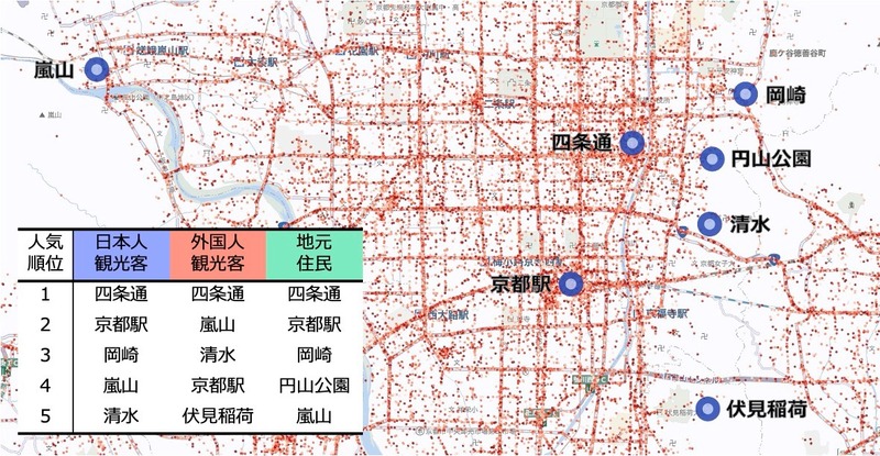 ジオテクノロジーズ、人流データで京都観光の日本人と外国人の違いを調査