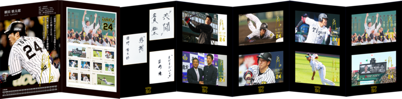 本フレーム切手セットでは、これまで公開されることの少なかった貴重な幼少期の写真をはじめ、高校生活で積み重ねた努力の日々、阪神タイガースの一員としてグラウンドに立ち、ファンを魅了した数々の瞬間、そして、多くの人の記憶に深く刻まれている引退試合での奇跡のバックホームまで――。夢を追い続けた時間、そして最後まで諦めなかった姿。それらすべてを、フレーム切手セットという形で一枚一枚に刻みました。