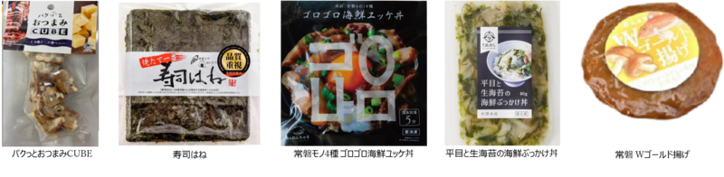 l カネセン水産(味付きつまみたこ各種、たこ飯の素、蛸とあおさ海苔の海鮮ぶっかけ丼)