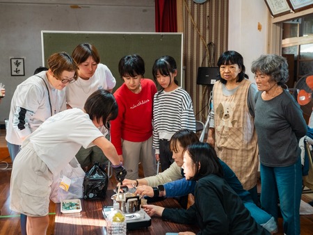 平田集落の皆さんに教わりながら、海水から塩づくりを体験  島唄歌詞づくりを通して地元の方々と交流するこどもたち