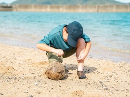 「水の循環」をテーマに、山・川・海のつながりを体感するこどもたち  砂浜で生き物を探し、奄美の豊かな自然に触れるこどもたち