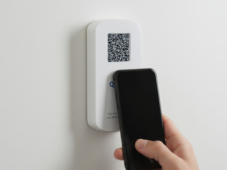 物理ボタンでQRの更新を制御。「1人1回」の厳密な配布が必要なシーンに最適