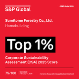 住友林業株式会社(社長:光吉 敏郎 本社:東京都千代田区)は世界的に著名な調査・格付け会社である米国のS&P Global社が行ったサステナビリティ格付け「The Sustainability Yearbook – 2026 Rankings」にて、住宅建設業における最高評価の「Top 1%」に選定されました。最高評価の獲得は8年連続となります。
