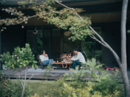 「N様は、こだわりはありつつも思いのすべてを語るのではなく、こちらからの提案を待っているご様子でした。」と谷口。その期待に応えるべく、様々な提案を行なったといいます。ウッドデッキもその一つ。「初めて現地を訪れた時、この景色を壊したくないと強く感じました。風景にそっと馴染ませて、家の中からも感じられるように。約3mの深い軒を設置し、それに合わせて大きなウッドデッキを配しました。」最初はその大きさに戸惑っていたN様も、今では家族で食事をしたり、キャンプ気分を楽しんだり。家族みんなのいちばんのお気に入りになったといいます。