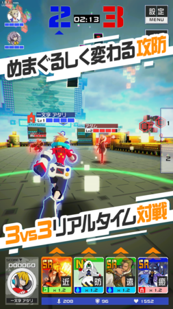 『#コンパス※ 戦闘摂理解析システム』は、1チーム3人で仲間とチーム組み、「1バトル3分間」で相手チームとステージに配置された拠点を奪い合うリアルタイム対戦ゲームです。また、スキルカードを集めて、組み合わせによる多彩な戦略で最強のデッキを作り、対戦に備えることができます。アクションゲーム、戦略ゲーム、カードゲームの要素を、1バトル3分に凝縮して詰め込んだ、まったく新しいジャンルのスマートフォンゲームです。