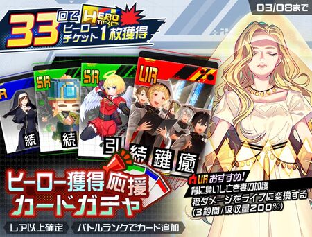 33回でヒーローチケット1枚獲得!レア以上確定!バトルランクでカード追加